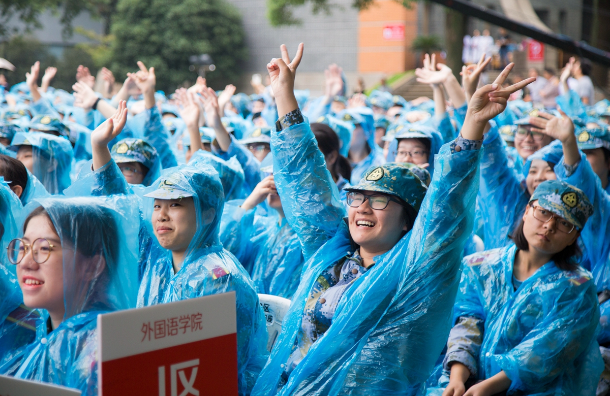 開學(xué)典禮正式開幕前,老師和學(xué)長學(xué)姐們?yōu)?span>2017級新生帶來了精彩的暖場表演。典禮現(xiàn)場雖下起了秋雨,但難掩師生們的熱情和喜悅,歡呼聲、掌聲在這所百年校園里陣陣回響。