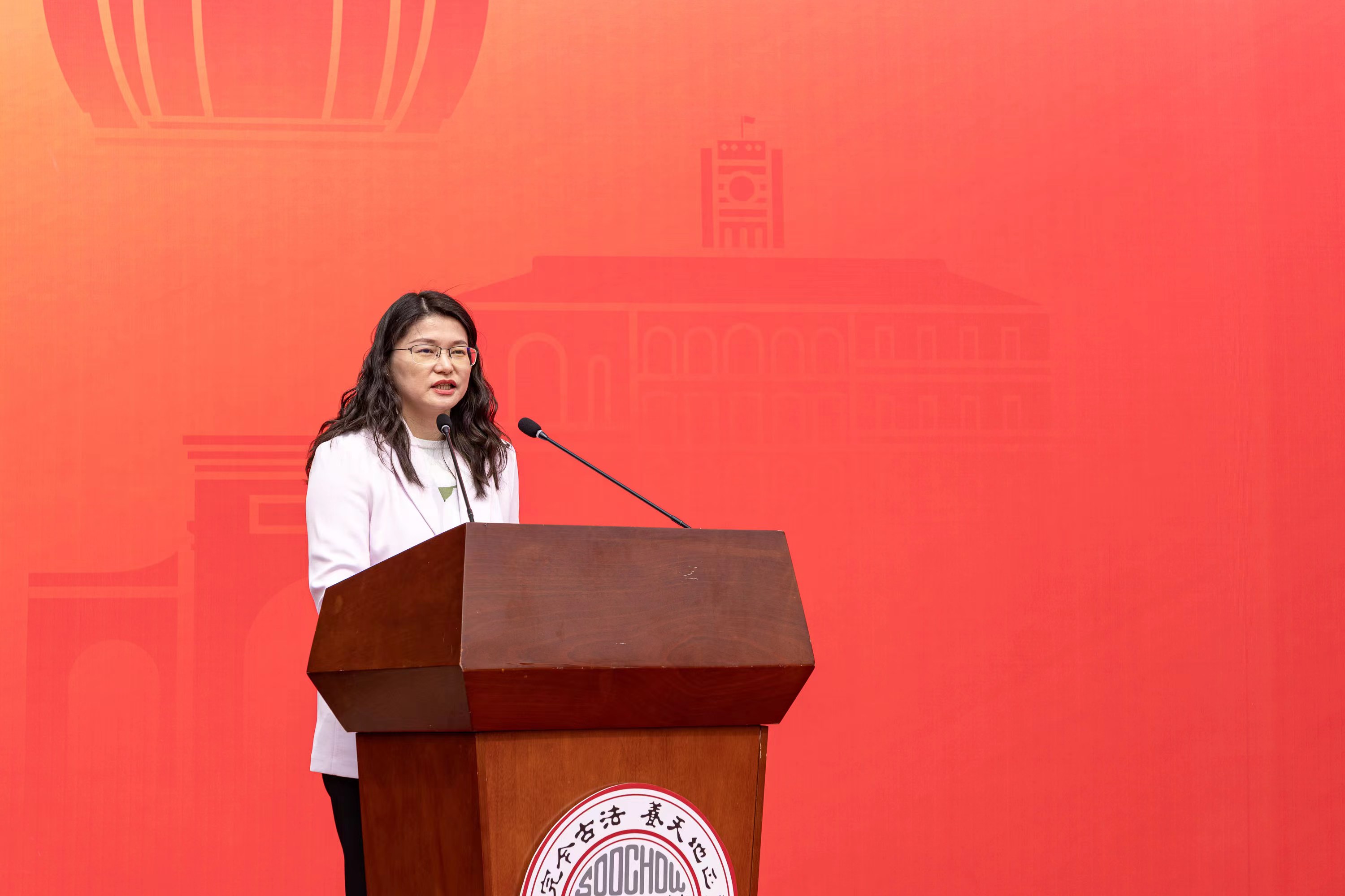 汝益仙從大力開展中外合作辦學、積極實施“走出去”戰略、著力打造留學江蘇品牌、積極搭建國際合作平臺等四個方面,介紹了江蘇省高等教育國際化戰略的發展概況,并高度肯定了蘇州大學在國際化發展中的一系列舉措和成果。她指出,此次活動是江蘇高校與國際高校之間的交流對話,是中外青年相互交流、中外文化相互品鑒的盛會,也是蘇州大學的人文環境、國際化發展成果的集中體現。
