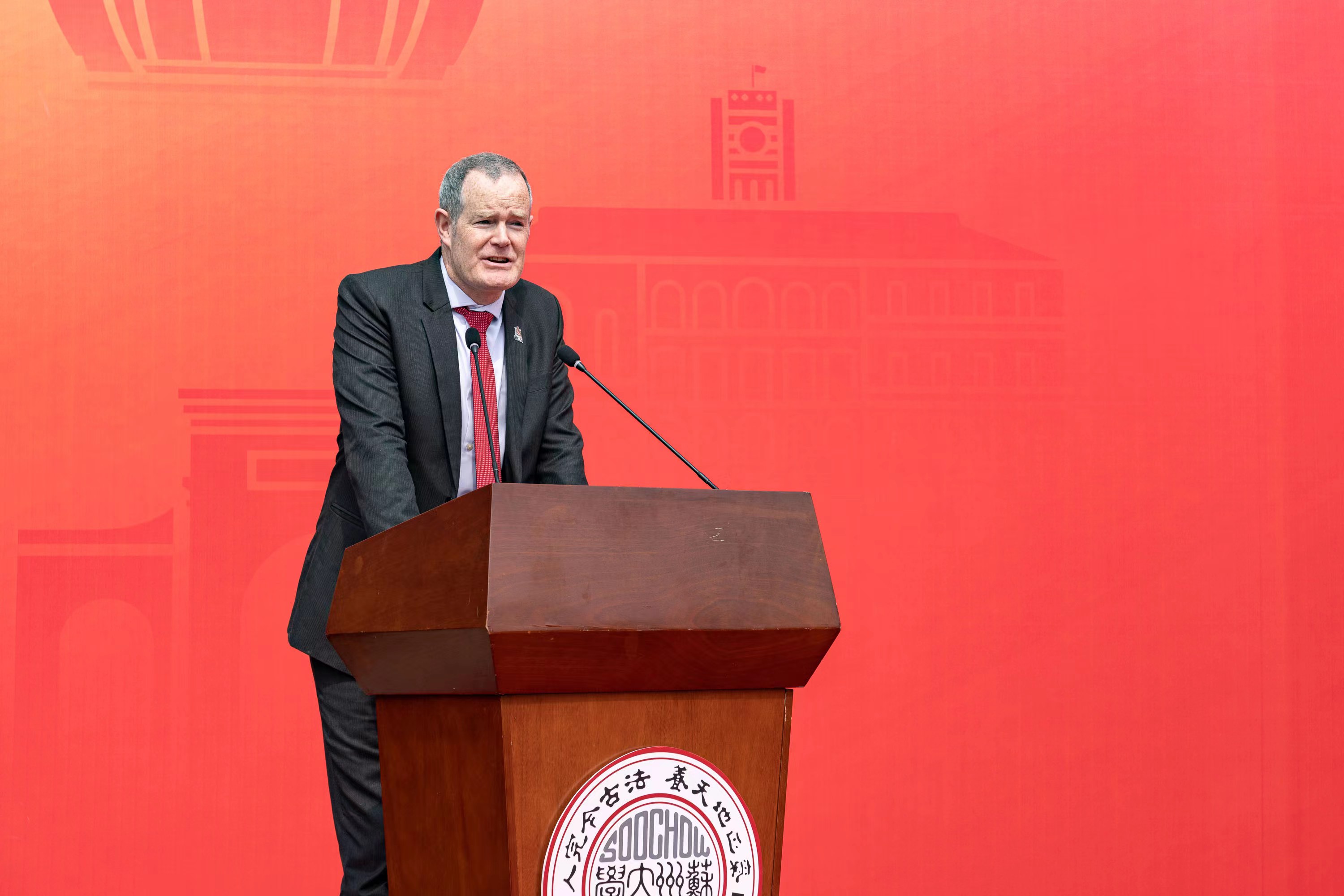 Brian Kirby簡要介紹了愛爾蘭皇家外科醫學院(RCSI)發展概況,并回顧了兩校合作辦學的歷史淵源。他指出,蘇州大學是享有國際盛譽的知名院校,從建校之初就開創了諸多“第一”, RCSI歷史悠久、學術成果豐碩,與蘇州大學的合作順勢而為、應運而生。今年,由兩校共同舉辦成立的蘇州大學國際創新藥學院,將積極發揮雙方優勢,努力為生物醫藥和大健康產業提供有力的人才支持。