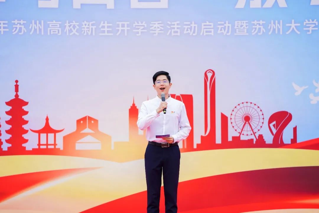 2022級新生代表、蘇州大學統計學專業本科生關釗銳在發言中感謝蘇州市委、市政府為新生精心準備的開學季活動,讓大家感受到蘇州市和學校的濃濃關懷,帶上這份深切的希望和囑托,他表示將立志在努力為祖國、為人民、為民族的奉獻中,讓青春更加絢麗多彩。