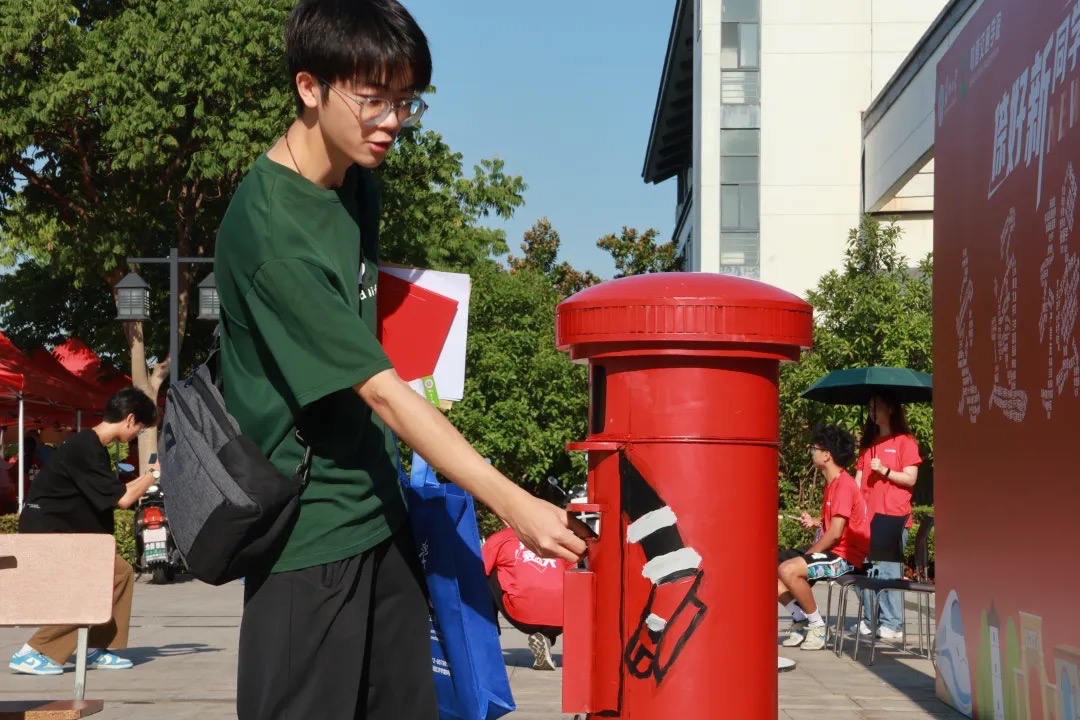 機電工程學(xué)院將郵筒改造成時光機,讓新生在明信片上寫下自己對未來的期待后投入,在四年后畢業(yè)時讓大家回望自己是否實現(xiàn)了最初的夢想。